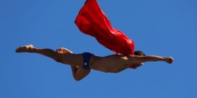 Read more → 151 Is it a bird? Is it a plane? No it's a man competing in the High Diving World Championships dressed as Superman